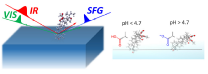 和周波分光は、対象となる試料に波長の異なる2つの短パルスのレーザー光を照射したときに、異なる媒体が接する境界面だけから発生する特異的な光を利用した、「表面・界面に存在する分子の挙動を選択的に観ることのできる」手法です。