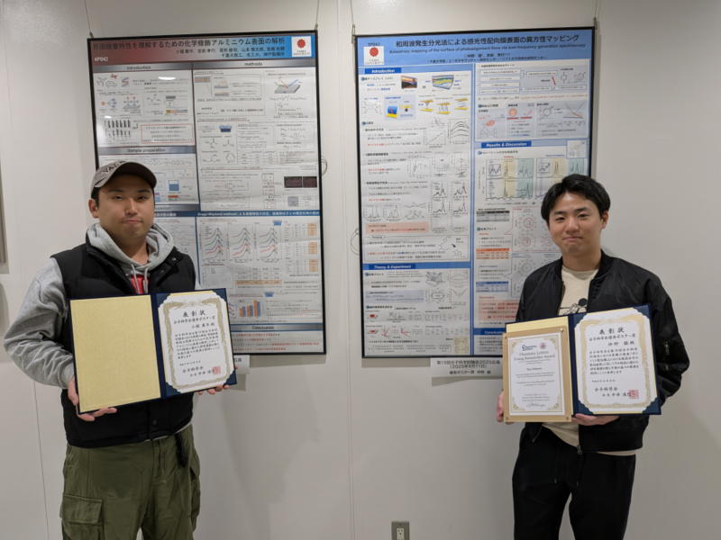 分子科学討論会2025広島でM2の仲野綾君,小堀薫平君の2名が優秀ポスター賞を受賞しました.
